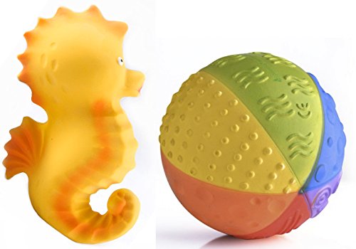 CaaOcho Baby - Combo Natural Rubber Sensory Ball Rainbow & Seahorse Bath toy - Hermetically sealed - Food-grade paint, BPA, Phthalates, PVC Free