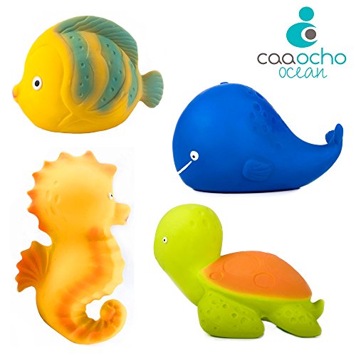CaaOcho Ocean - Combo Natural Rubber Seahorse, Butterfly Fish, Sea Turtle & Whale Bath Toy - Hermetically Sealed