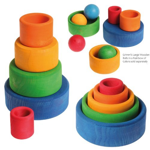 Grimm's Set of 5 Small Wooden Stacking & Nesting Rainbow Bowls, Blue Outside